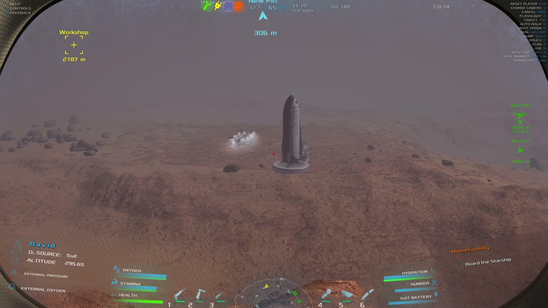 | After I board the rocket, it's game over. It would be nice to "orbit Mars" and select a new area / site to land or, return home / end game. | 60.06 | 2026-04-05 01:14:31 | |||