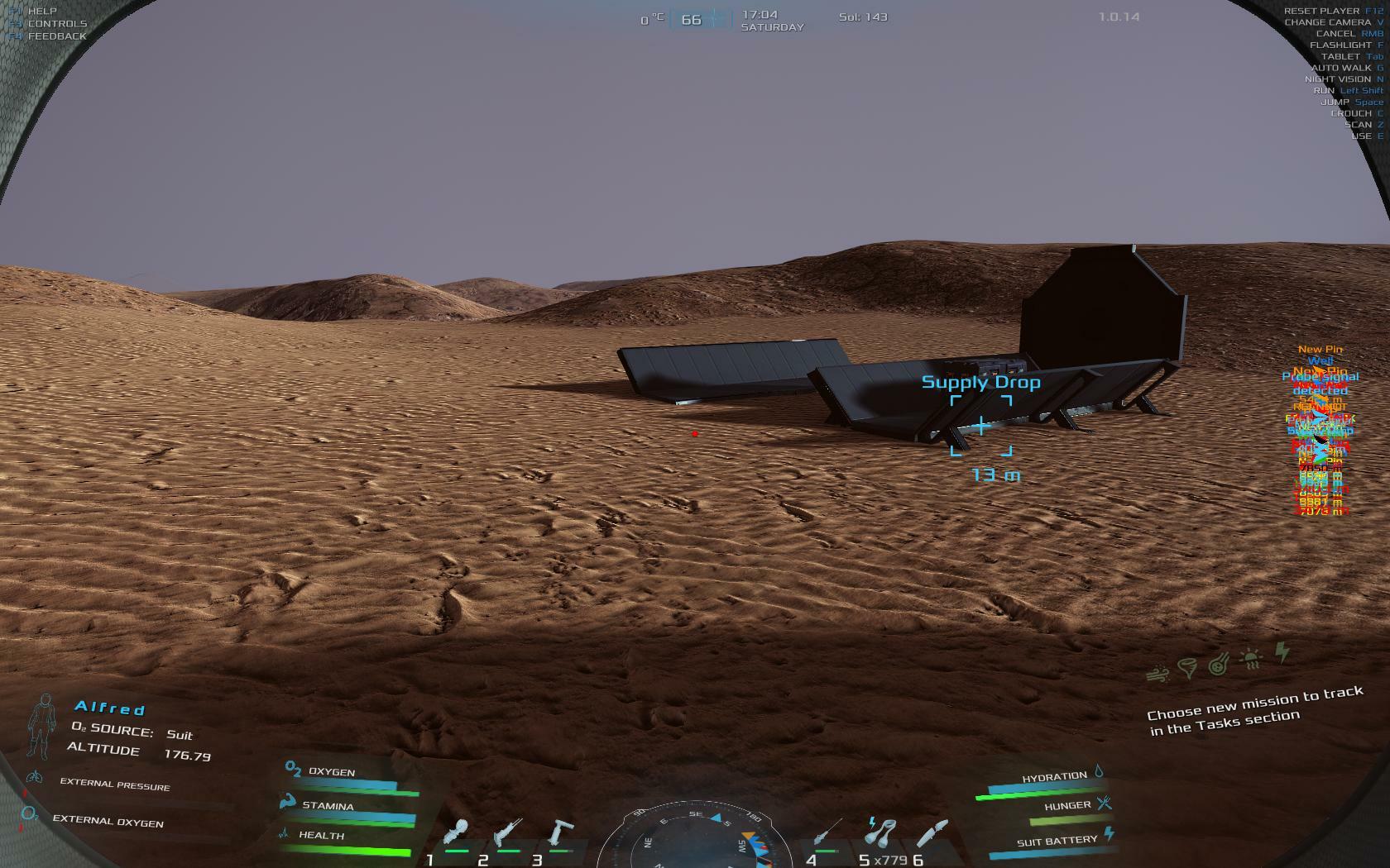 | I am not too happy that I had to travel 12000 meters (round trip) from my base, and the supply drop had nothing in it. Additionally, the jackhammer would not work anymore. I saw the capsule parachuting down as I was flying the jetpack. I approached the supply capsule seconds after it landed. The box said use , I opened it up and nothing was there. Then I got a message saying all was collected. | 29.97 | 2026-03-10 03:36:55 | |||