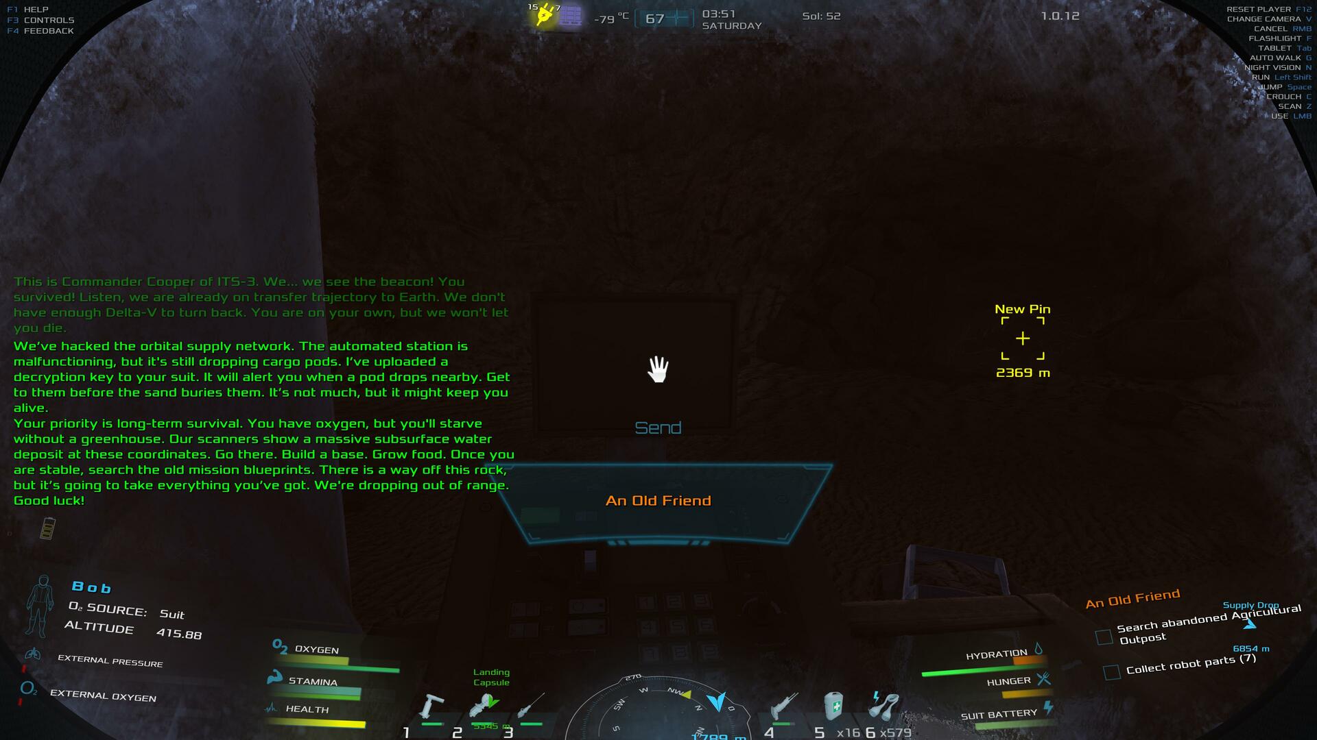 | Unfortunately Spottys parts were spawned underneath the outpost. I didnt havce enought room to get him the first time I came through so I left them there. I hope that there is a chance to get another spotty in the future, I am so lonely here on mars | 59.94 | 2026-02-22 06:03:45 | |||