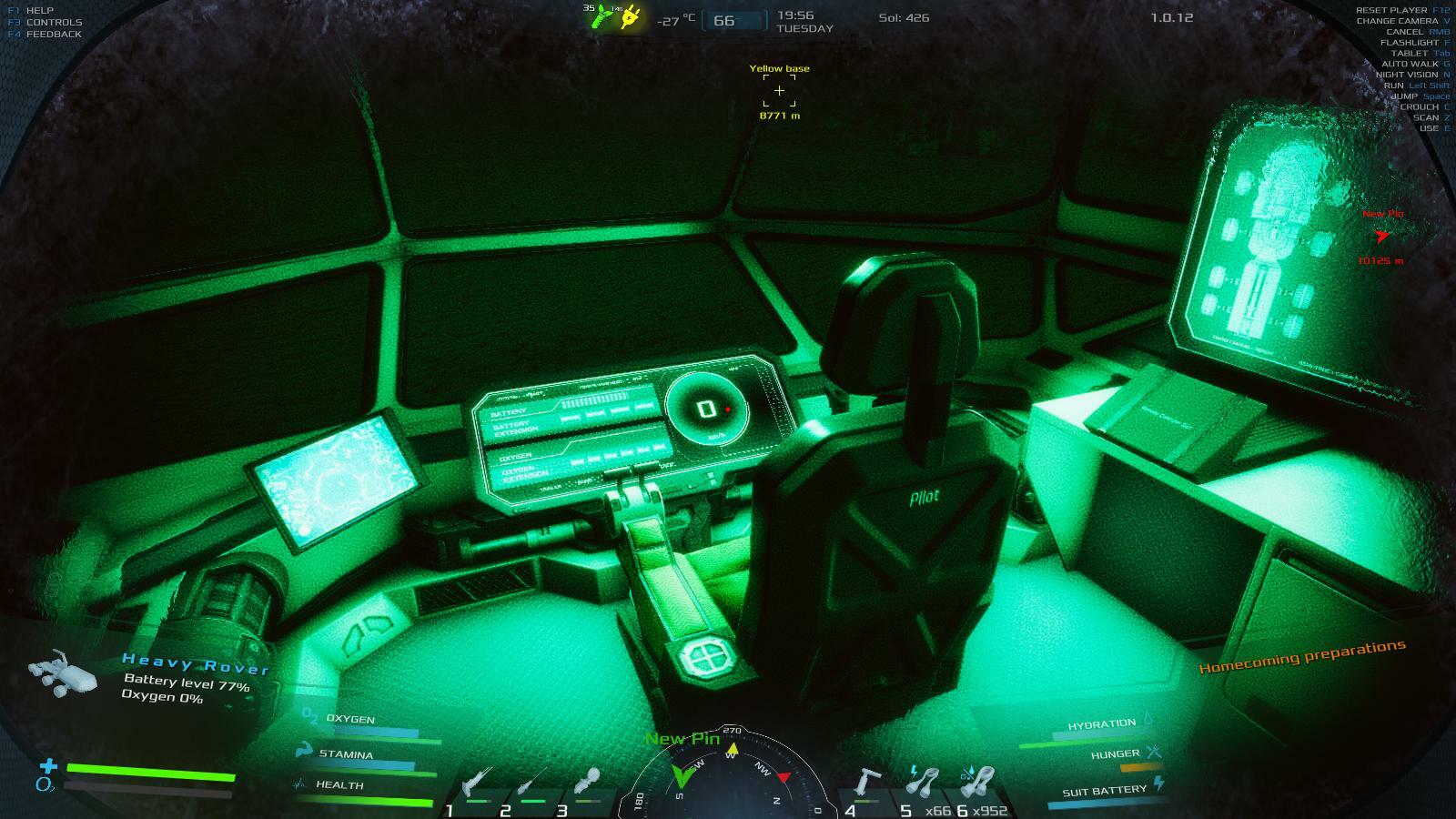 | I've had this happen with both the mars truck and the rover. While driving up a hill, the vehicle suddenly looses the ability to continue moving forward and rolls backwards. After that, no matter what you do you can't get the vehicle to move at much more than 1 speed unit. sometimes, the vehicle will only go in reverse no matter if you're pressing "w" or "s". Doing a reset of the vehicle with "r" has no affect. So at this point, I have 2 useless vehicles out in the wilds that can't get enough movement power to even climb a small dune. Both vehicles are near 100% battery and at 100% health. | 60.00 | 2026-02-20 00:26:48 | |||