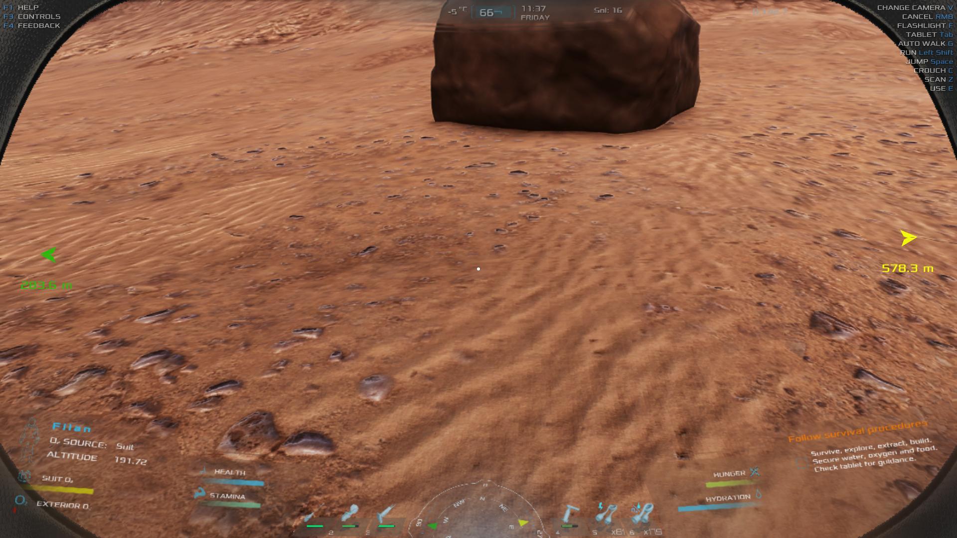 | Beta test: During a sandstorm you can't mount the ATV, even when you're in a position where you aren't moving. Since one of the new missions requires that you find a signal before the conditions degrade it, and since you have to dismount to see the message, that makes doing the mission impossible. | 71.97 | 2024-01-19 11:53:46 | |||