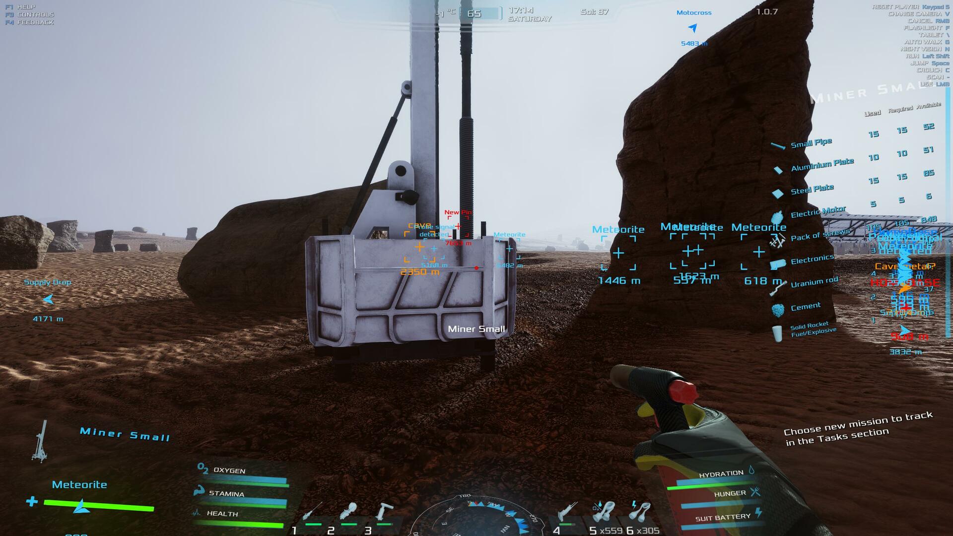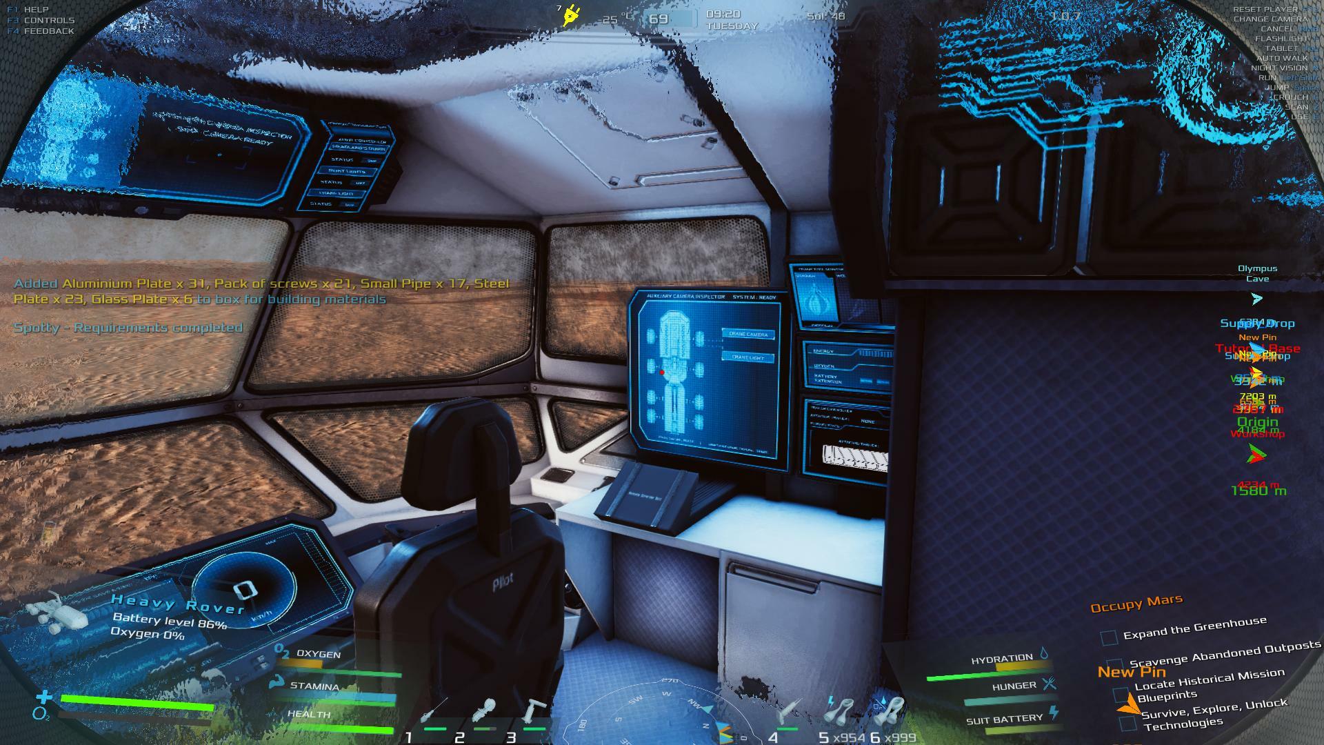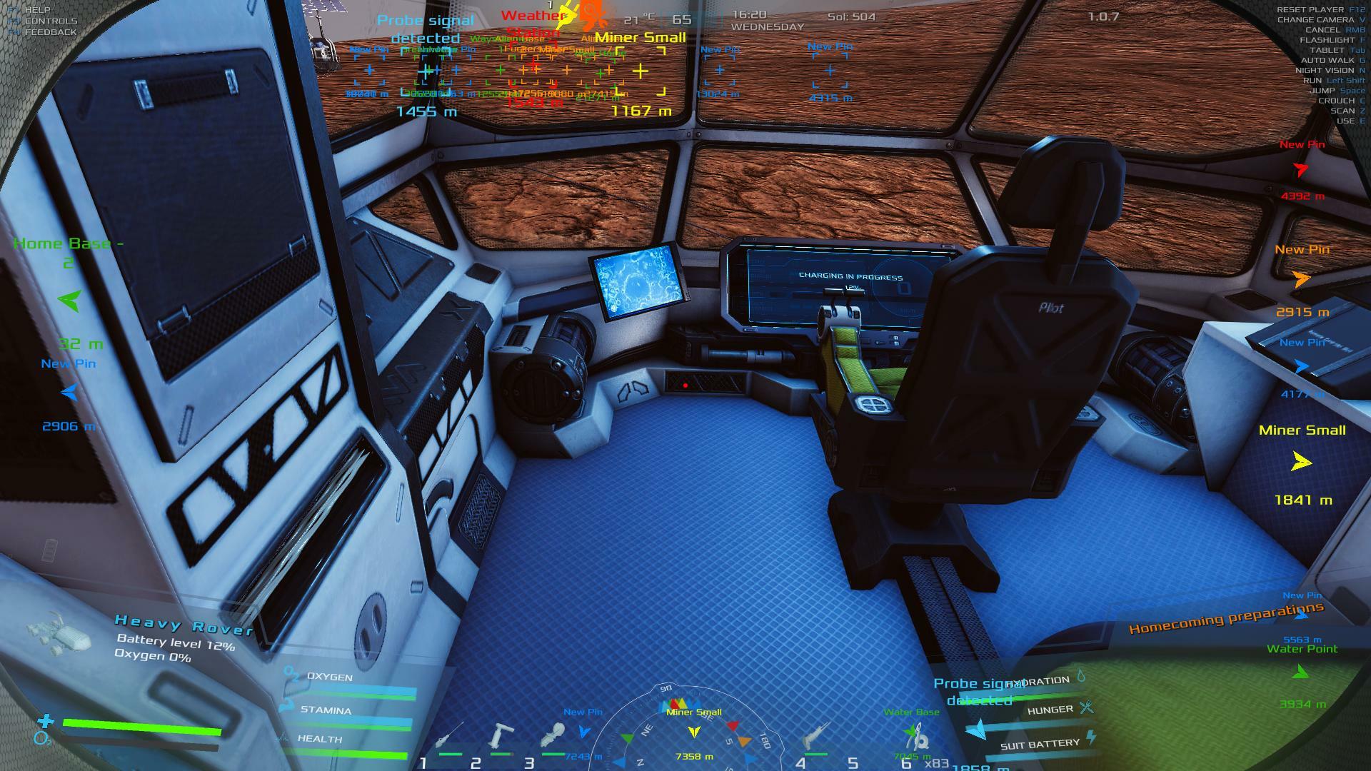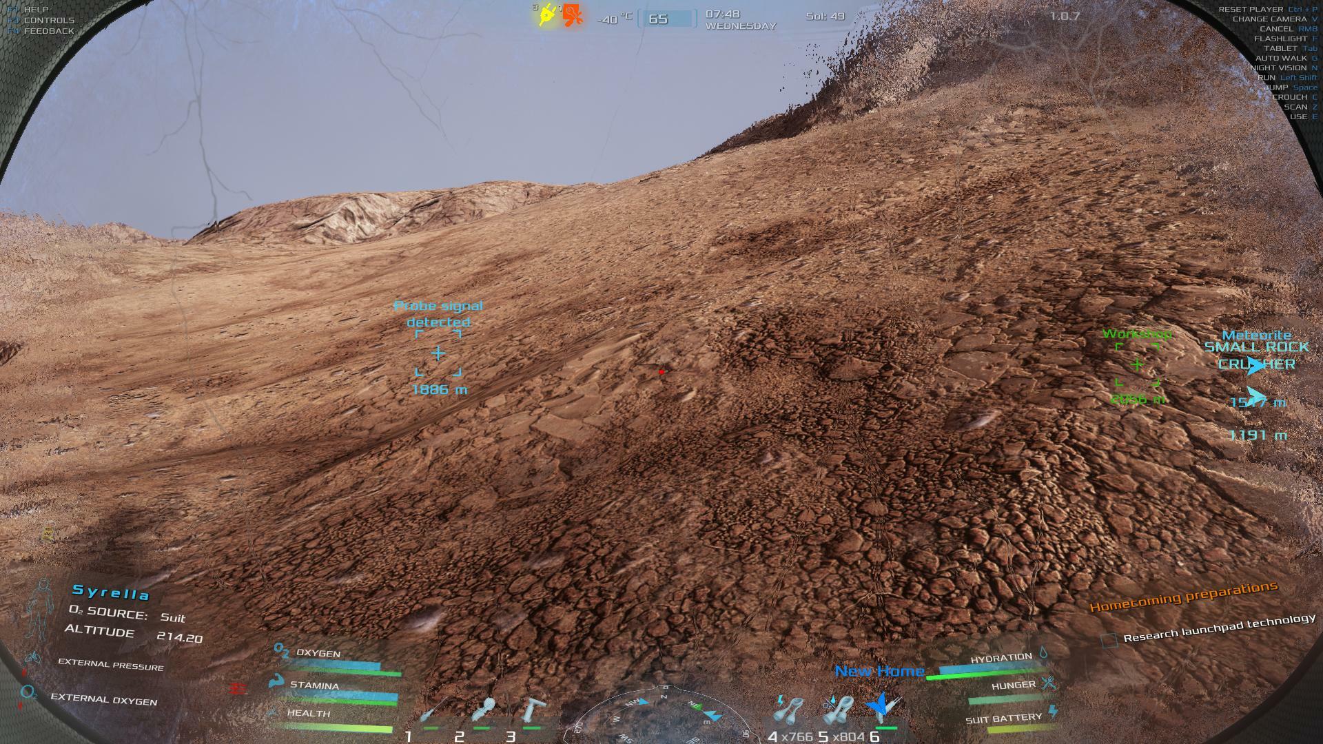 | When you wipe out on a bike or quad, if you were using the G key to go full speed without holding anything, this action resumes imediately when you get back on. This can have disasterous consequences if you are not positioned well for moving forward. The Go action should be toggled off when you wipe out. Similarly, the Rover Radar will remain in an on state when you leave the seat but not appear to resume when you get back in. You have to turn it off and then back on again. Either it should resume in the on state, or it should toggle to the off state so you don't have to hit Q twice to turn it back on. Lastly, I would suggest using keys 1, 2 and 3 while in the Rover arm control mode to select which tool you want so you don't have to cycle through two of them to get to the one you want. Maybe just one more idea while I'm at it. You don't hear any heartbeat or heavy breathing to warn you of your status while driving around in third person view. As these are not seen by the character but are felt, the player should be presented with this data in any view where the clock still ticks. | 60.07 | 2026-02-13 04:14:26 | |||