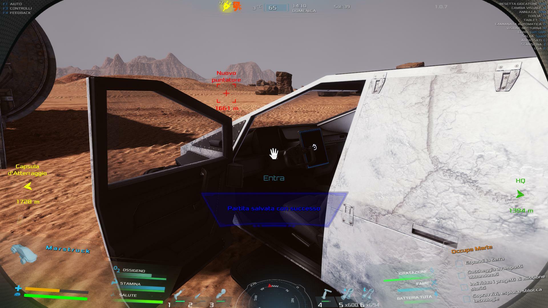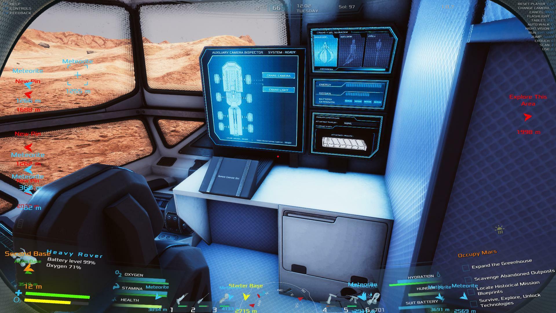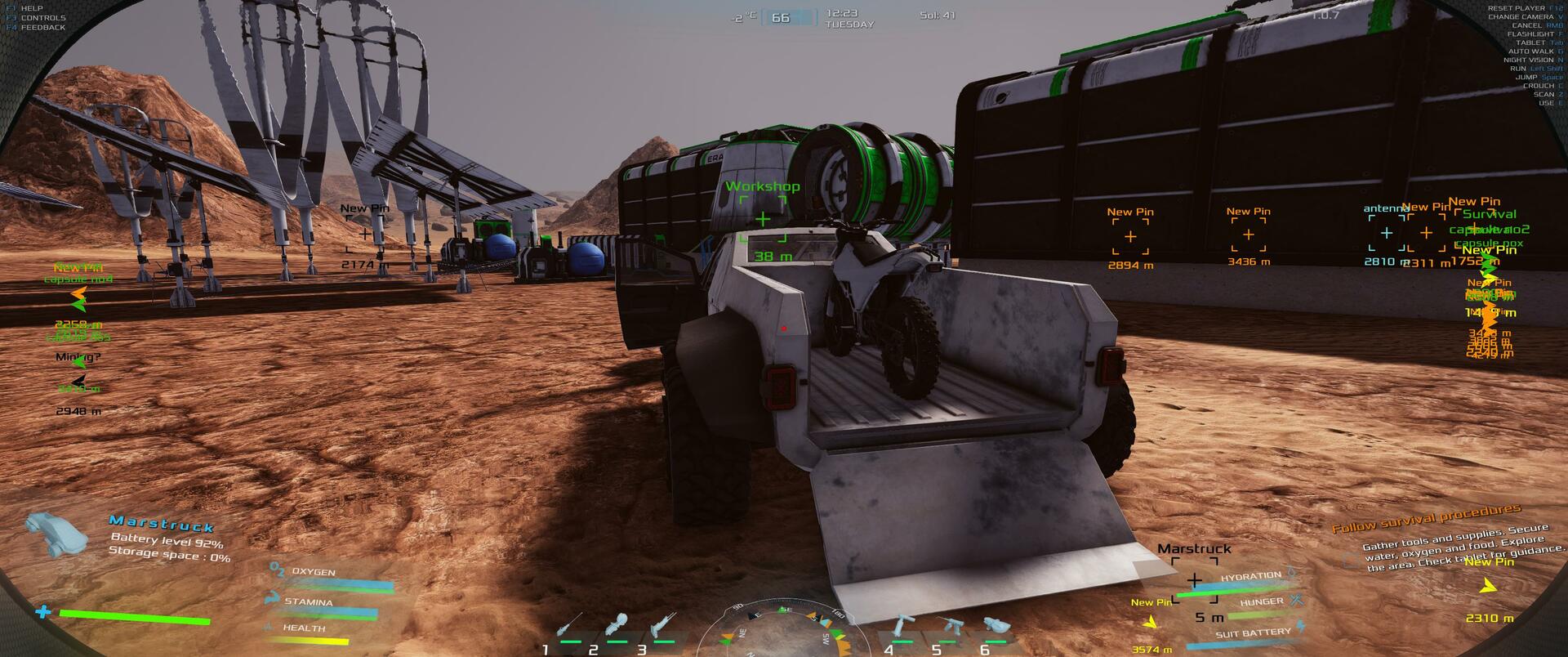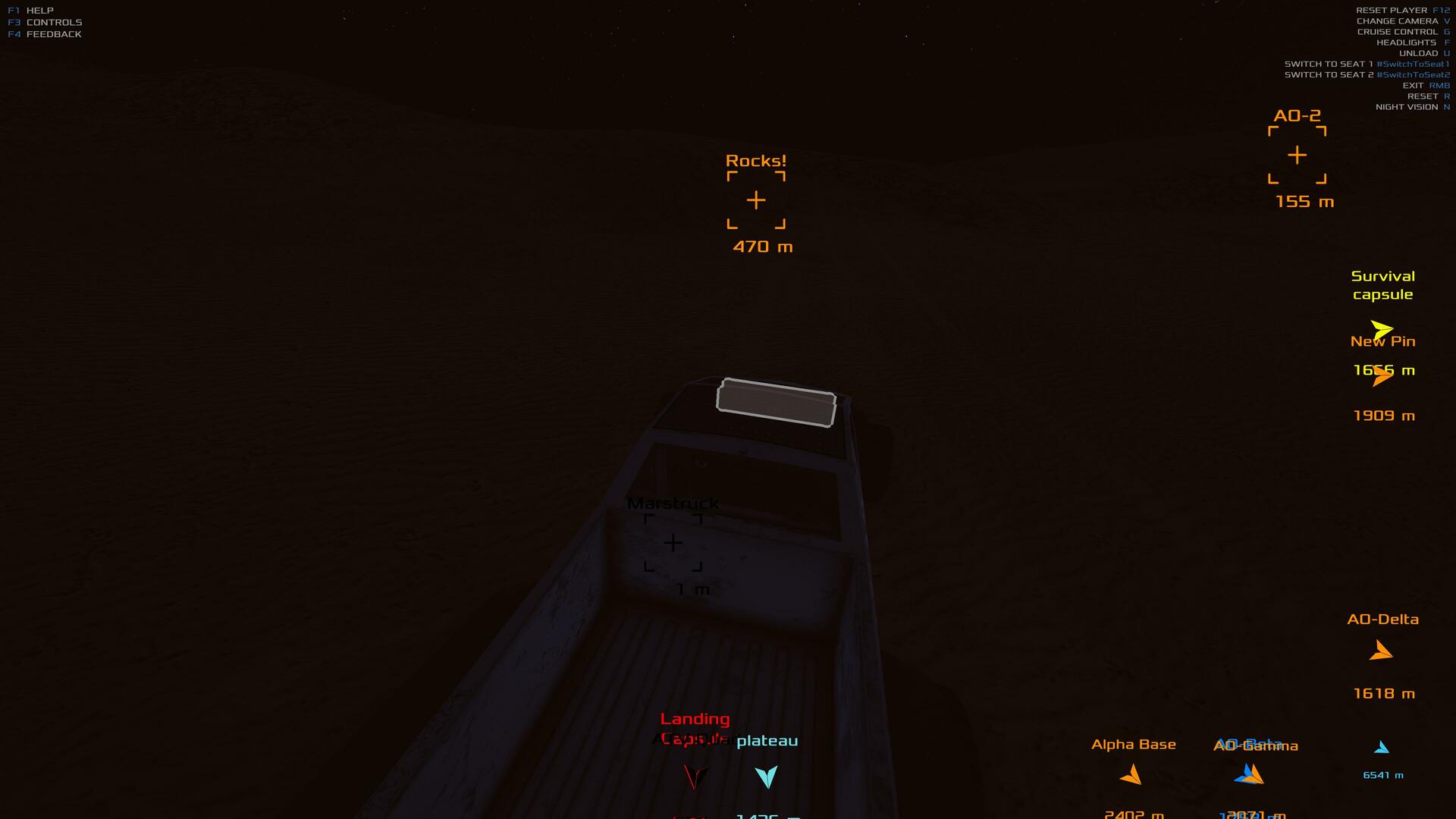 | Small bug report, not a major problem, but twice in a row now when I went to collect a resource drop the canaster was stuck in mid-air. both times the problem solved itself after I restarted the game, but I thought I should tell you. Also, I was wondering about the physics engine in regard to the marstruck. When I drive the truck at full speed and hit any sort of bump, even just a little rock that I could pick up by hand, the whole truck launches into the air. It also tends to roll with very little provocation, making it hard to drive in rough terrain. I know that Mars has lower gravity than Earth, but the truck's antics are excessive to the point of being silly. Thank you for your effort to make a great game. | 60.06 | 2026-02-08 22:18:13 | |||