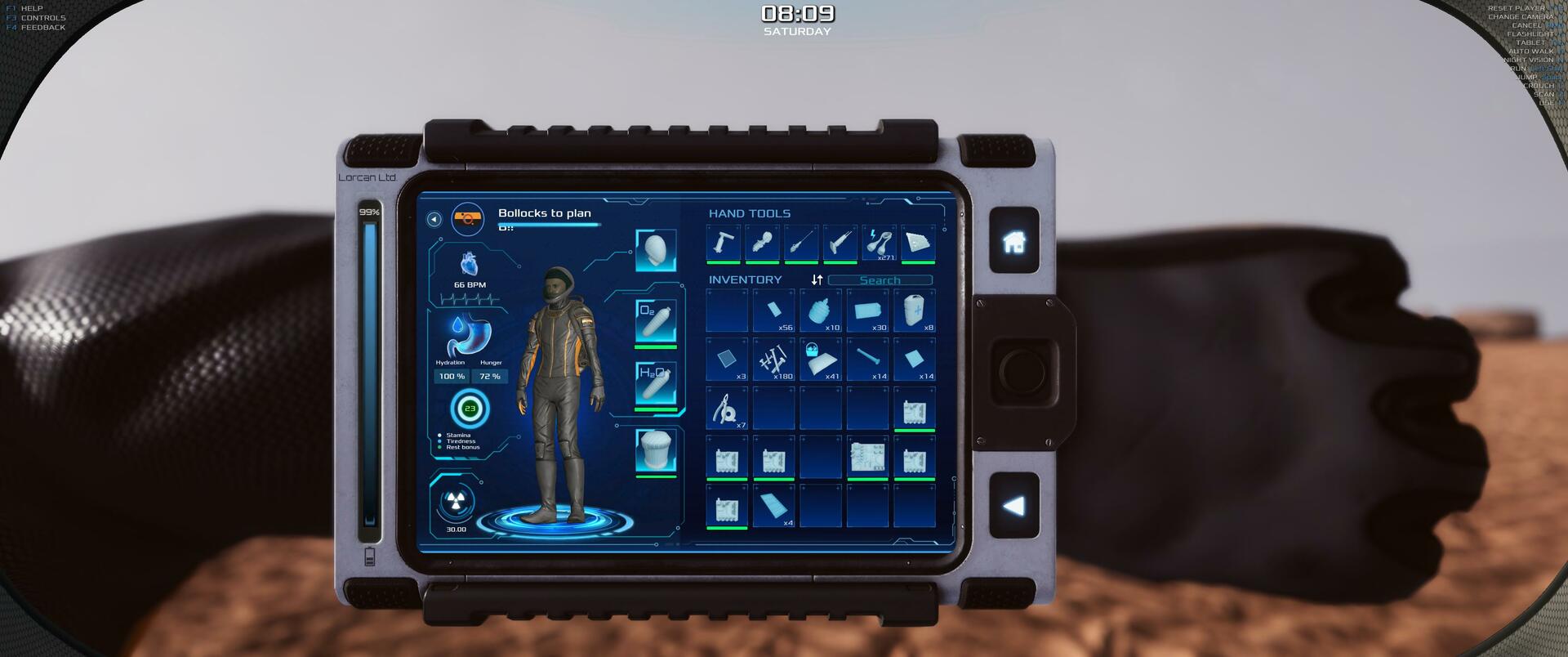 | I picked up a rock to put into the rover. I grabed it and the camera didn't switch to 3rd person and i couldn't put it into the truckbed. When I pressed '3' to use the drill it dropped the stone. Since then I can't interact with anything. I'm going to try to load the game again. | 30.02 | 2025-11-19 20:35:27 | |||