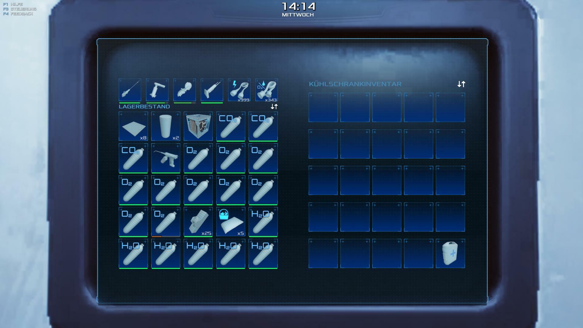 | Hi, i stuck in the Transfermenu from Inventory to wardrobe. I don´t know why this happened but think there maybe a problem with the to many O2-Minitanks or the boxes. | 60.06 | 2026-02-02 16:04:04 | |||